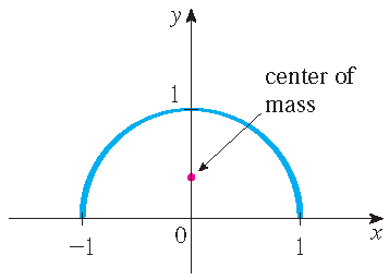 Een draad heeft de vorm van de halve cirkel \(x^2+y^2=1\) met \(y\geq 0\). Bepaal het massamiddelpunt van de draad als de massadichtheid