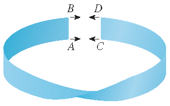 deze een halve draai te geven en de korte uiteinden aan elkaar te plakken: